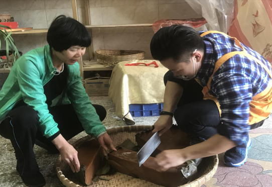 在访谈中,黄张炳师傅谈到制作“横河大粄”的艰辛。他说:“从上一辈人制作大粄传到他这辈已经是第四代了,有一百多年的历史了,现在年纪也大了,没有能力再继续做下去了,该把这祖传的制作技艺传承下去。现在这个店也交给他最小的儿子黄俊杰打理,好在他肯学,能吃苦,不然祖传的技艺就无人传承下去了,老祖宗留下来的东西就失传了”。