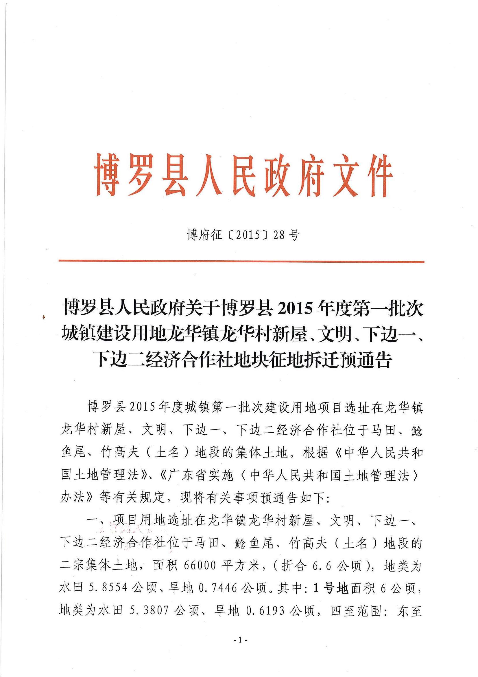关于中文博彩平台2015年度第一批次城镇建设用地(龙华镇)的拆迁预通告