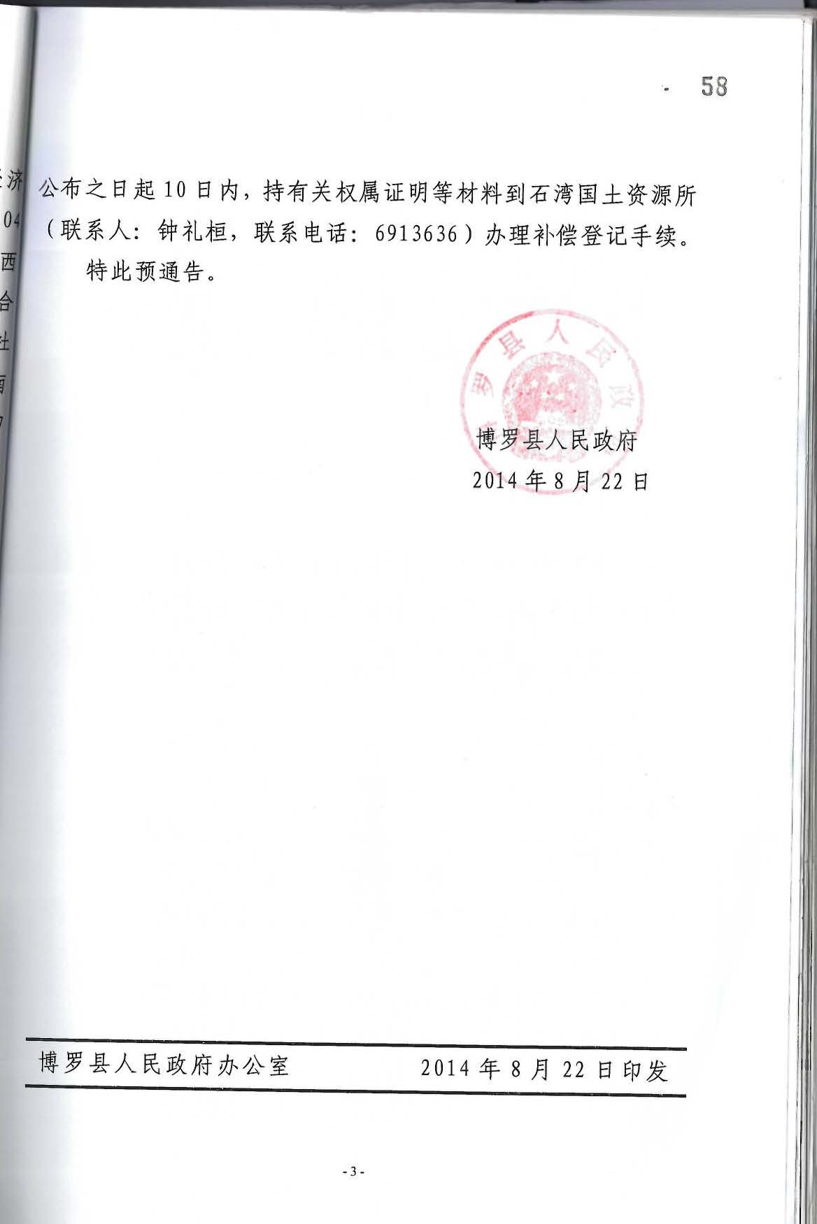 粤国土资(建)字[2015]943号关于中文博彩平台2014年度第二十三批次城镇建设用地征地拆迁预通告