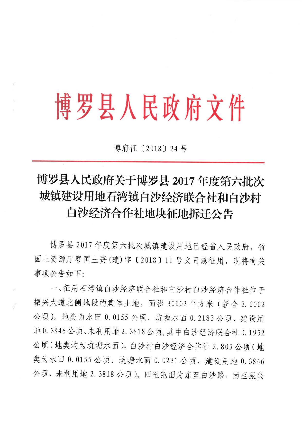 关于中文博彩平台2017年度第六批次城镇建设用地的征地拆迁公告