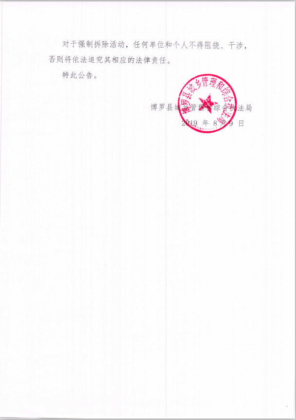 中文博彩平台城乡管理和综合执法局强制拆除公告