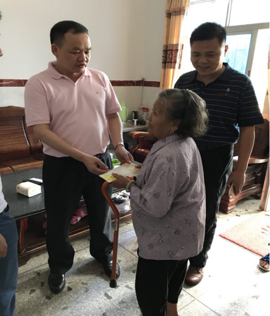 七一期间,县城管大队党组书记、大队长杨永忠带领大队领导班子到石坝丁塘村走访慰问困难党员,为