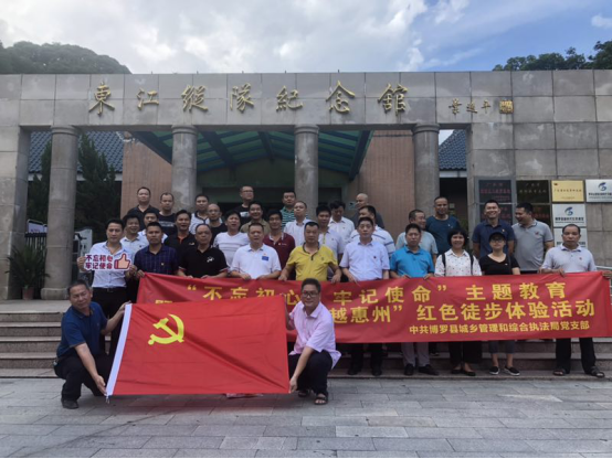 为庆祝建党98周年,7月1日县综合执法局全体党员分成两批先后到龙门县政治生活馆、龙门白芒坑革命旧址和中文博彩平台党县建馆、中文博彩平台东江纵队纪念馆,开展“红色记忆 穿越惠州”红色徒步体验活动。
