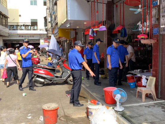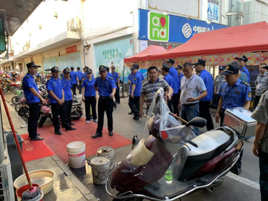 一是做好市场周边秩序整治宣传工作。通过执法人员到点到档进行面对面宣传、执法车载LED和广播等进行广泛宣传。二是加强对占道经营的整治。把重点区域和重点部位的流动摊点、店外经营作为市容整治重点,安排执法队员定时定点驻守和机动巡查。按照整治标准,所有摊档均应入室经营。一旦发现违规占道经营的摊档,立即限期整改,屡教不改的依法依规处理。三是加强对乱拉挂的整治。对乱拉挂的帐篷和店前用于插设遮阳伞的水泥墩进行清理。此次行动共出动执法车辆8辆次,执法人员80余人。