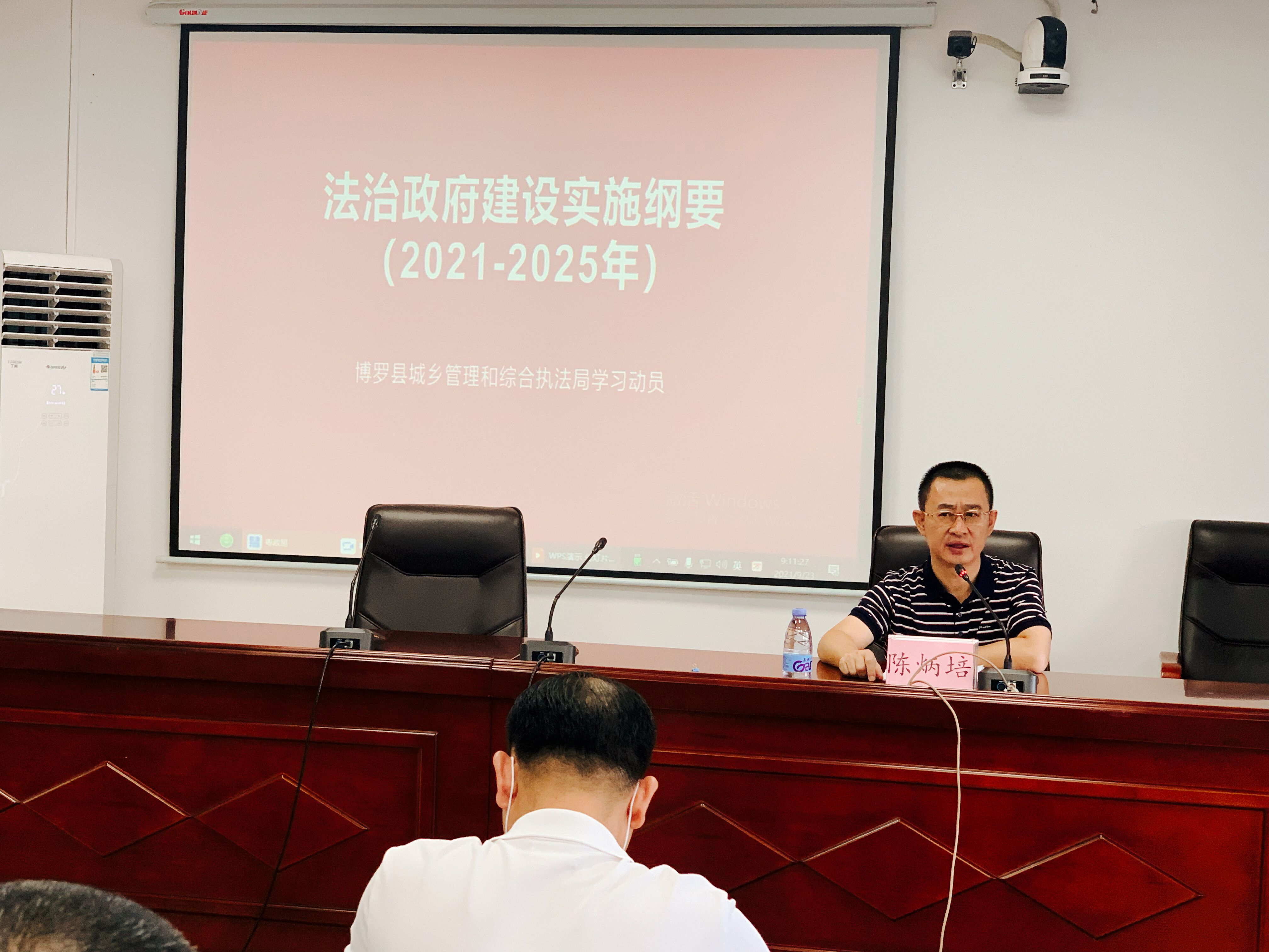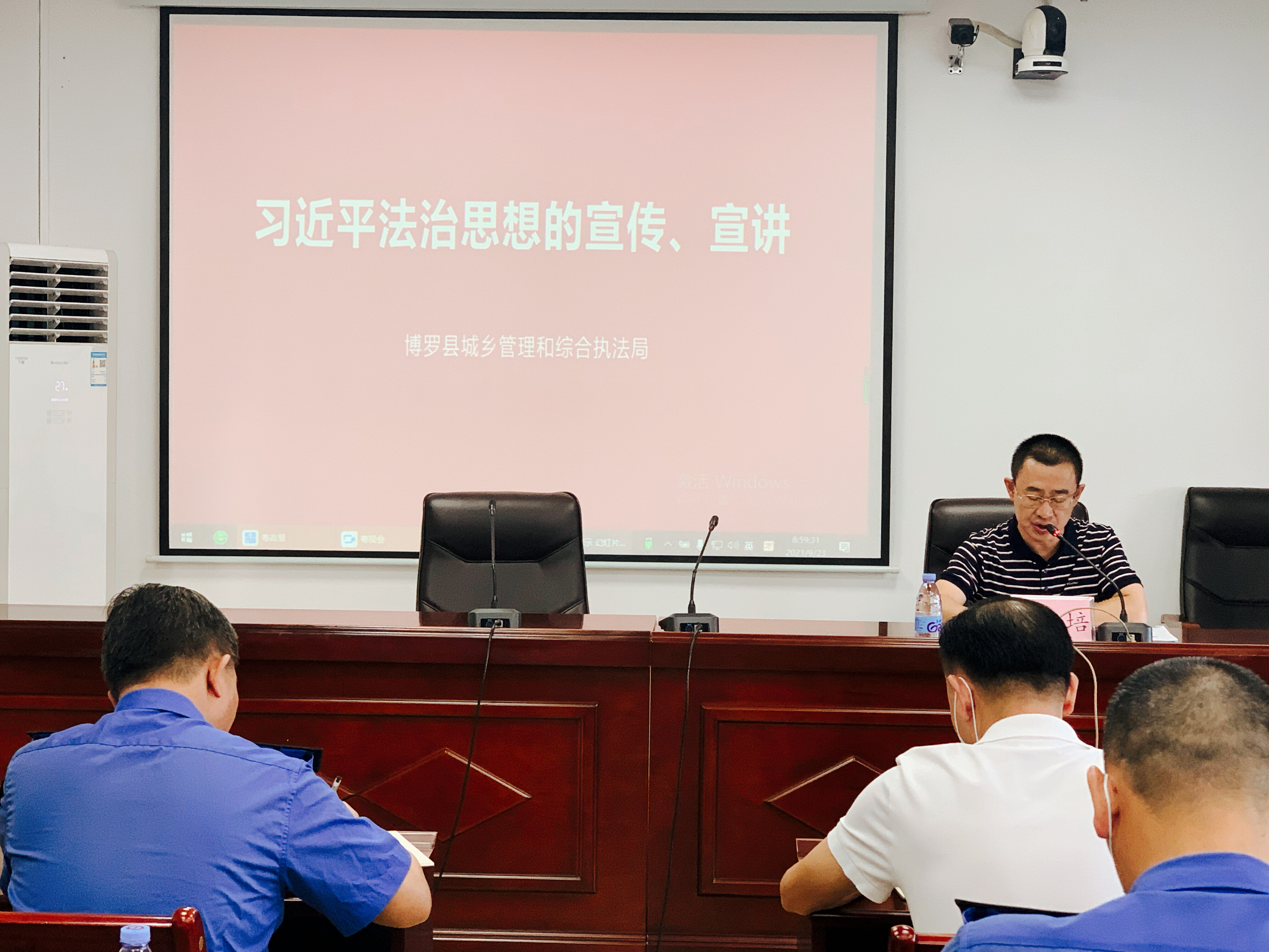 为了不断提升我县城管领域执法业务水平,根据《中文博彩平台关于镇街道实行综合行政执法的公告》博府〔2020〕24号的要求,经我局领导研究决定,于9月23日开展我县城管执法业务培训,我局执法工作人员在局四楼会议室,各镇街执法队工作人员通过“粤政易”的“粤视会”在各镇街分会场进行网络同步进行培训。