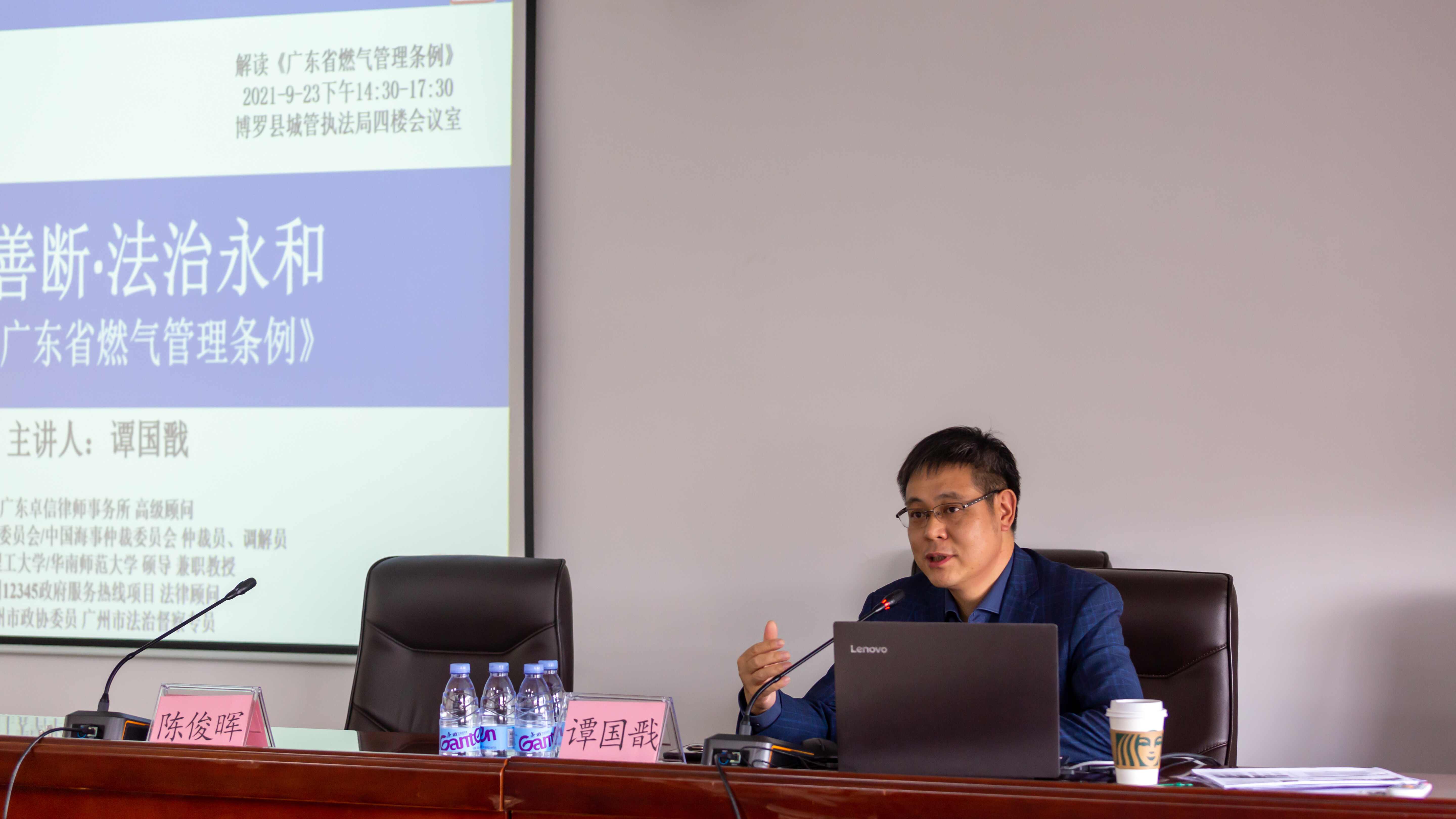 本次培训分上下午进行,上午我局邀请了暨南大学民商法学硕士,高级信用管理师,惠州仲裁委员会仲裁员,惠州市“一带一路”粤港澳大湾区法律服务指导中心专家库成员,现为北京市盈科(惠州)律师事务所胡俊枫律师从法律渊源、出台背景、条例剖析及处罚案例等方面向全体执法人员讲解市容环境、建筑垃圾、生活垃圾管理条例的执法流程和注意事项。下午我局邀请了广州市政协委员、中国广州仲裁员、华南师范大学律师学院兼职教授,华南师范大学法学院法律硕士研究生(学位)导师,华南理工大学工程硕士校外硕士生导师谭国戬律师从出台背景、条例解读及燃气执法等方面向执法人员全面解读《广东省燃气管理条例》。