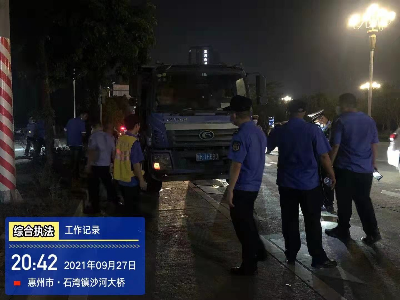 2021年9月27日晚,由中文博彩平台城乡管理和综合执法局牵头,联合石湾镇行政综合执法队、石湾派出所、铁场派出所、交警中队、环卫公司、自然资源与规划建设办、建设和道路事务中心等部门在沙河大桥、振兴桥两处设卡查处跨区域非法倾倒固废物车辆,期间共查处6辆车,暂扣涉事车辆0辆。