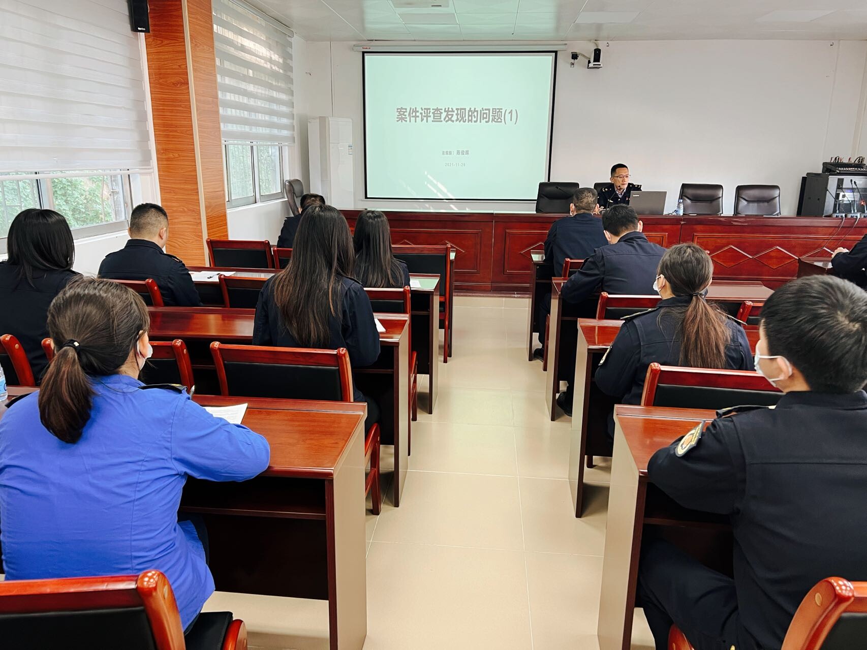 本次会议由法规股股长陈俊晖同志主持,从案件评查发现的问题、解决措施和对执法办案工作提出意见和建议几个方面分析原因,集中研判,以此加强业务交流和指导学习,进一步提升我局执法办案人员能力素质,力争每起案件都成为经得起检验的“铁案”。