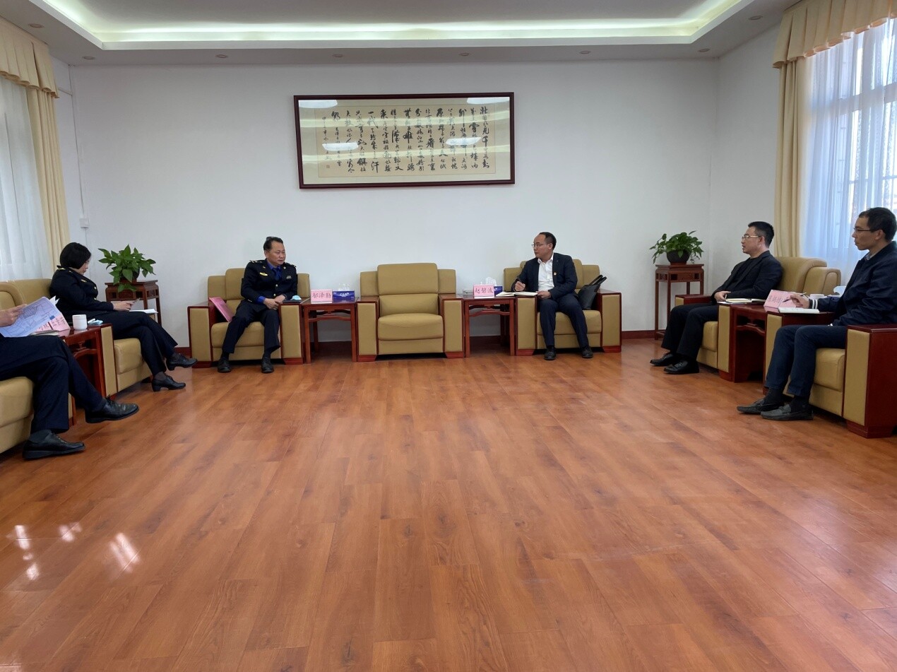 1月19日,市城乡管理和综合执法局党组书记、局长邬泽勤带队到中文博彩平台调研城乡管理和综合执法工作,与县委常委、宣传部部长赵碧波及县城管执法局领导班子等进行了座谈,并到县智能装备产业园实地调研。