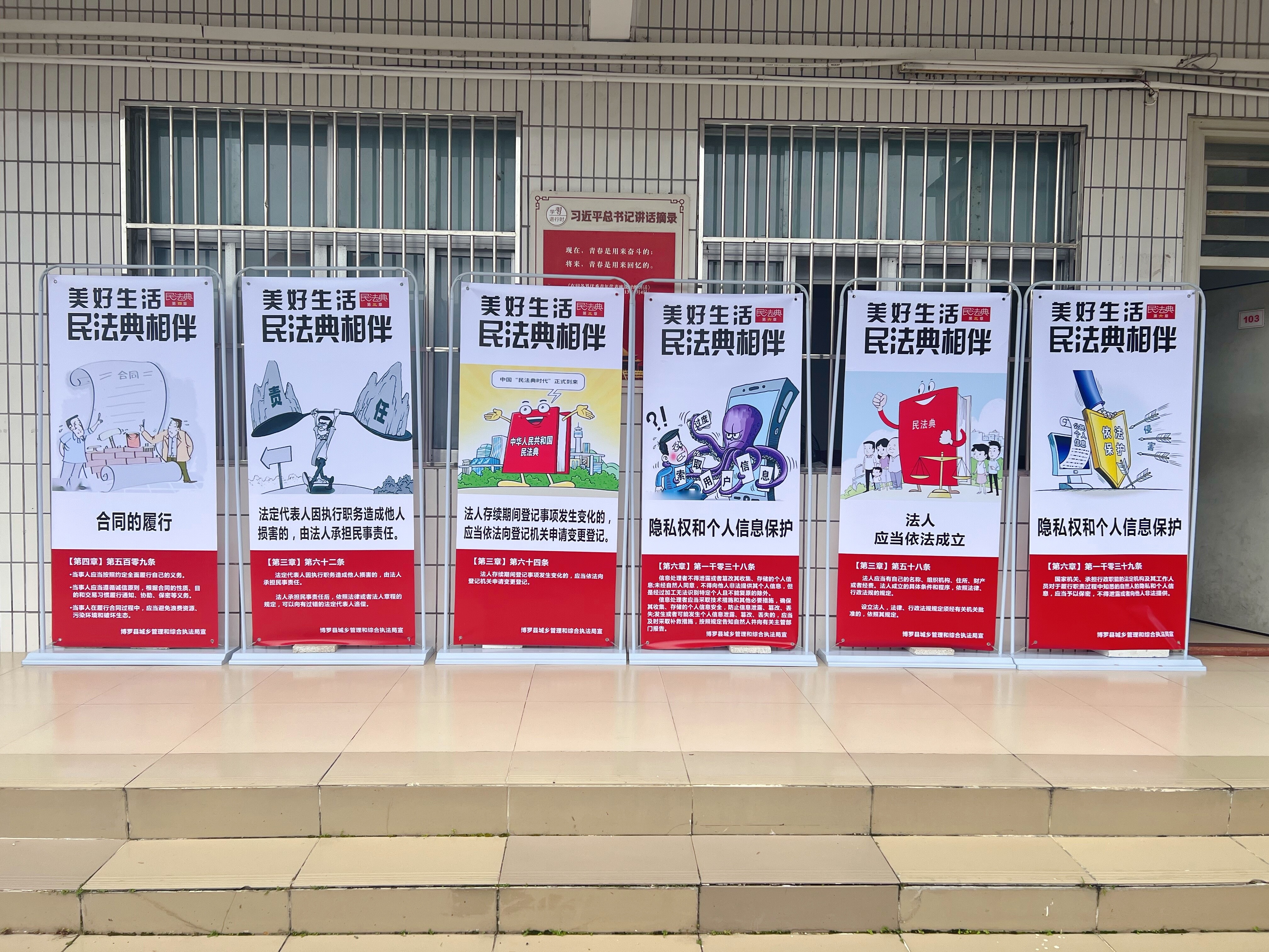 此次普法活动,我局法规股在局一楼走廊摆放“美好生活·民法典相伴”主题宣传展板,营造学习宣传氛围,以条例结合动画形式向全局干部职工宣传民法典日常法条,尤其是涉及到干部职工日常生活中有关财产安全、个人信息保护等方面的内容。