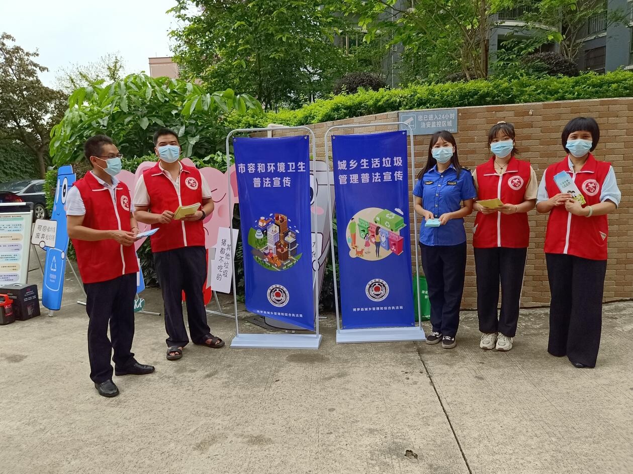 我局在社区组织普法宣传员和志愿者,通过摆放展板、发放《惠州市市容和环境卫生管理条例》、垃圾分类普法宣传折页、开展法律咨询等丰富多彩的宣传方式,向居民普及市容环境卫生及垃圾分类知识,耐心讲解城乡管理和综合执法对我们生活的重要意义。通过本次活动,提升了居民对垃圾分类的认识水平,进一步拉近了城管队伍与社区居民之间距离,引导居民树立良好的生活居住习惯的同时,也为营造共建共治共享的和谐社区奠定良好的法治环境。