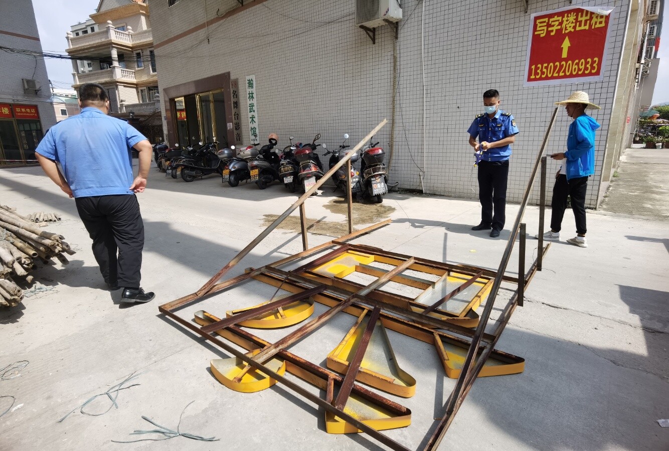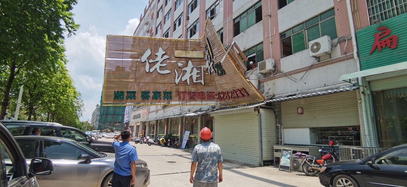 6月28日,在县城大桥北路,作业人员正在对违规设置的广告牌逐一进行拆除,现场拉起了警戒线及设置人墙隔离。执法队员已按照《惠州市户外广告和招牌设置管理办法》的相关要求,向广告牌设置方进行宣传和沟通,并引导广大市民及商户给予支持,积极配合拆除工作。拆除过程中,执法队员还温馨提醒过往市民注意安全。