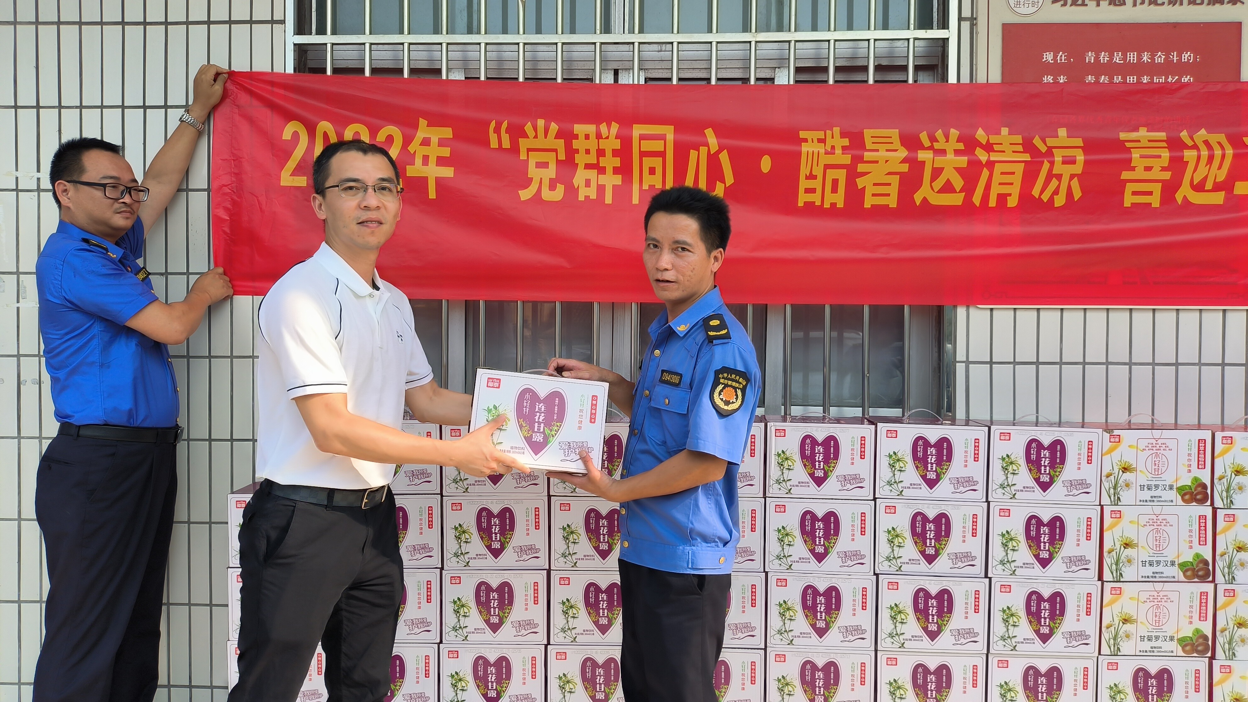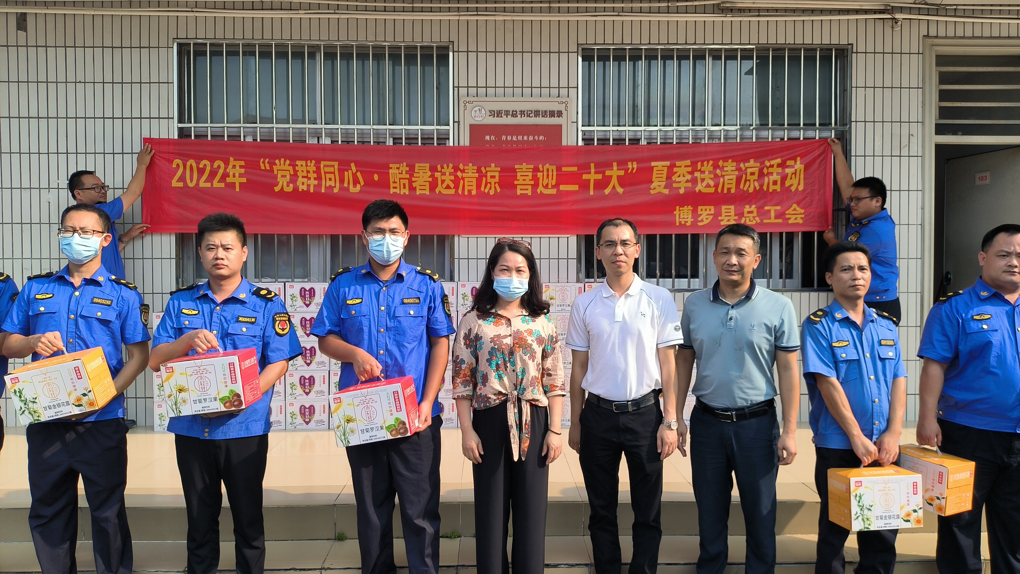 县总工会维权服务部部长李秀清带领慰问团队,为我局高温下坚守在一线的执法人员送来70箱,为高温天气下奋战在一线的工作人员送去丝丝凉意,献上一份诚挚的关怀。
