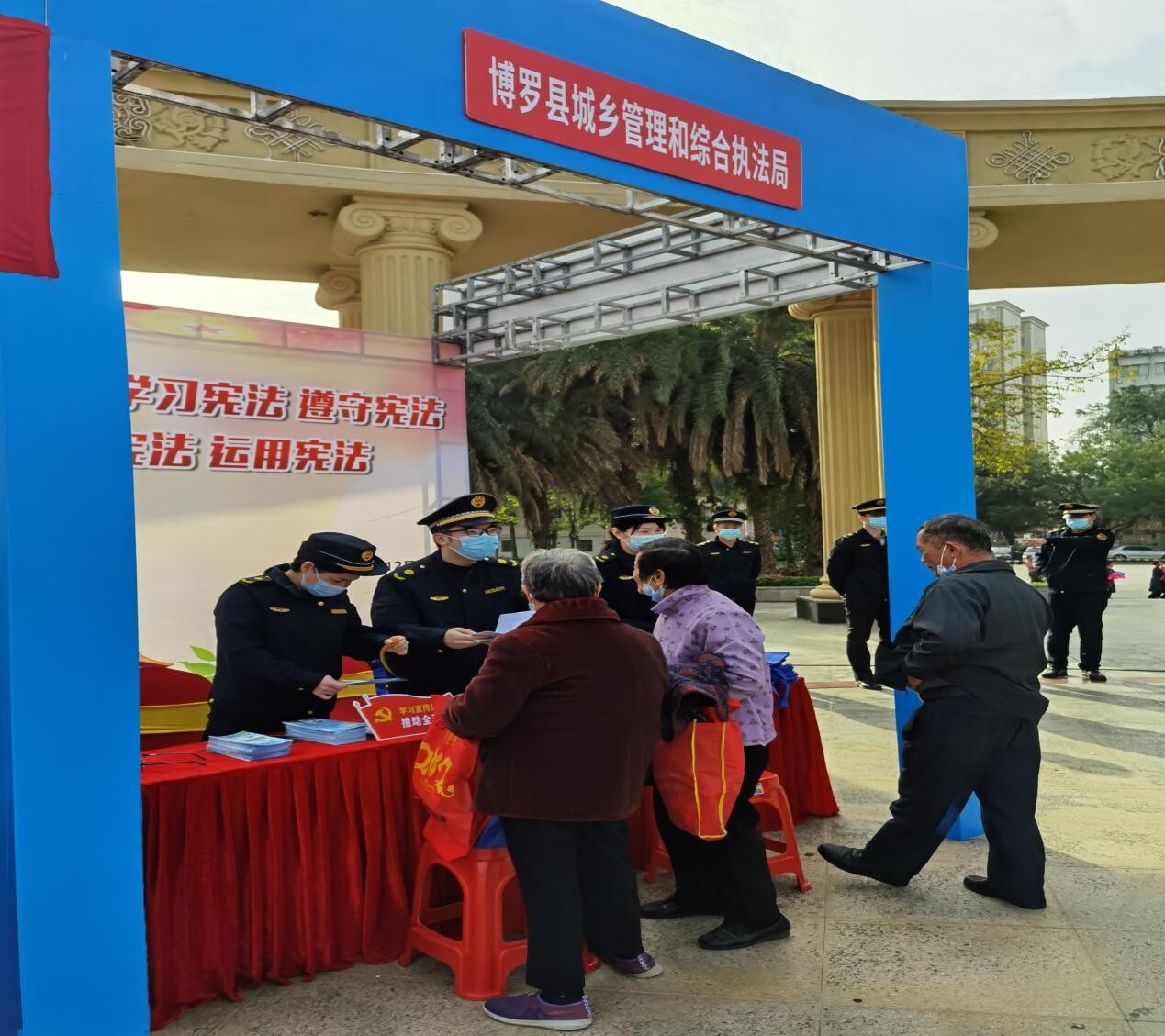 在活动现场,我局开展了现场宣传、咨询等工作,大力营造尊崇宪法、学习宪法、遵守宪法、维护宪法、运用宪法的浓厚氛围。现场派发《建筑垃圾处置宣传》《垃圾分类普法宣传》《不得设置户外广告的几种情形》折页、《瓶装液化石油气安全使用手册》等城管普法宣传资料和普法宣传纪念品。我局还通过现场的电子显示屏为市民群众展播《燃气安全宣传》和《城市管理知多点》普法动画。