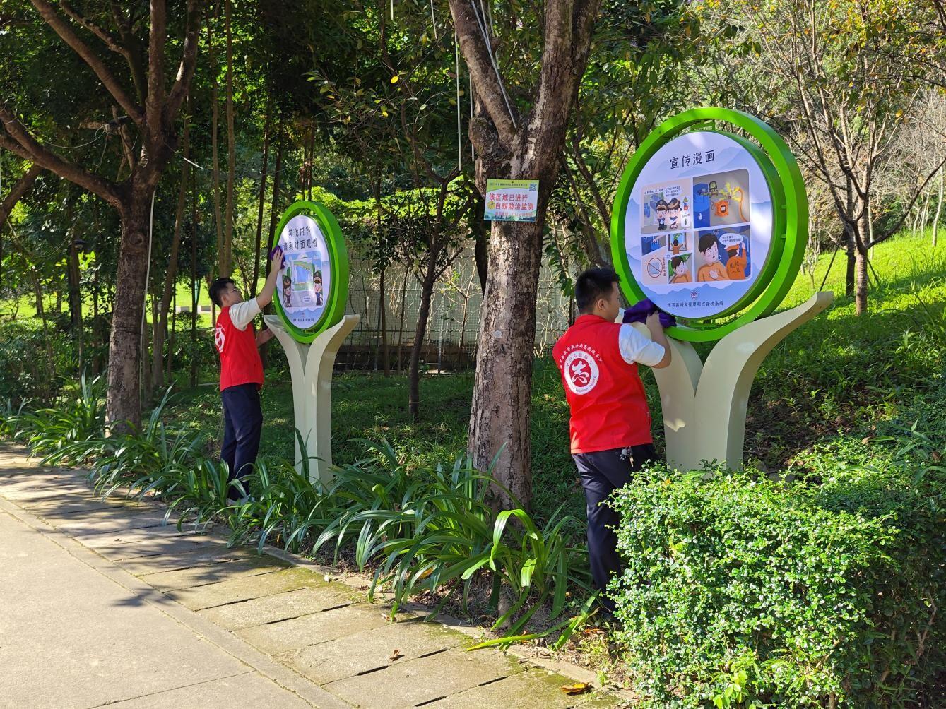 9月26日,县城乡管理和综合执法局组织志愿者到东山公园开展擦拭普法宣传栏及清理周边环境卫生活动。