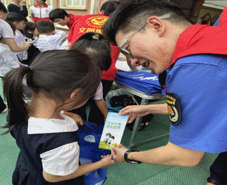 活动现场,志愿者化身老师以“垃圾分类,保护环境”为主题。通过分发垃圾分类普法宣传手册的方法向小朋友们生动地讲述了垃圾分类的重要性,并穿插“你问我答”的形式提高小朋友们的参与度。