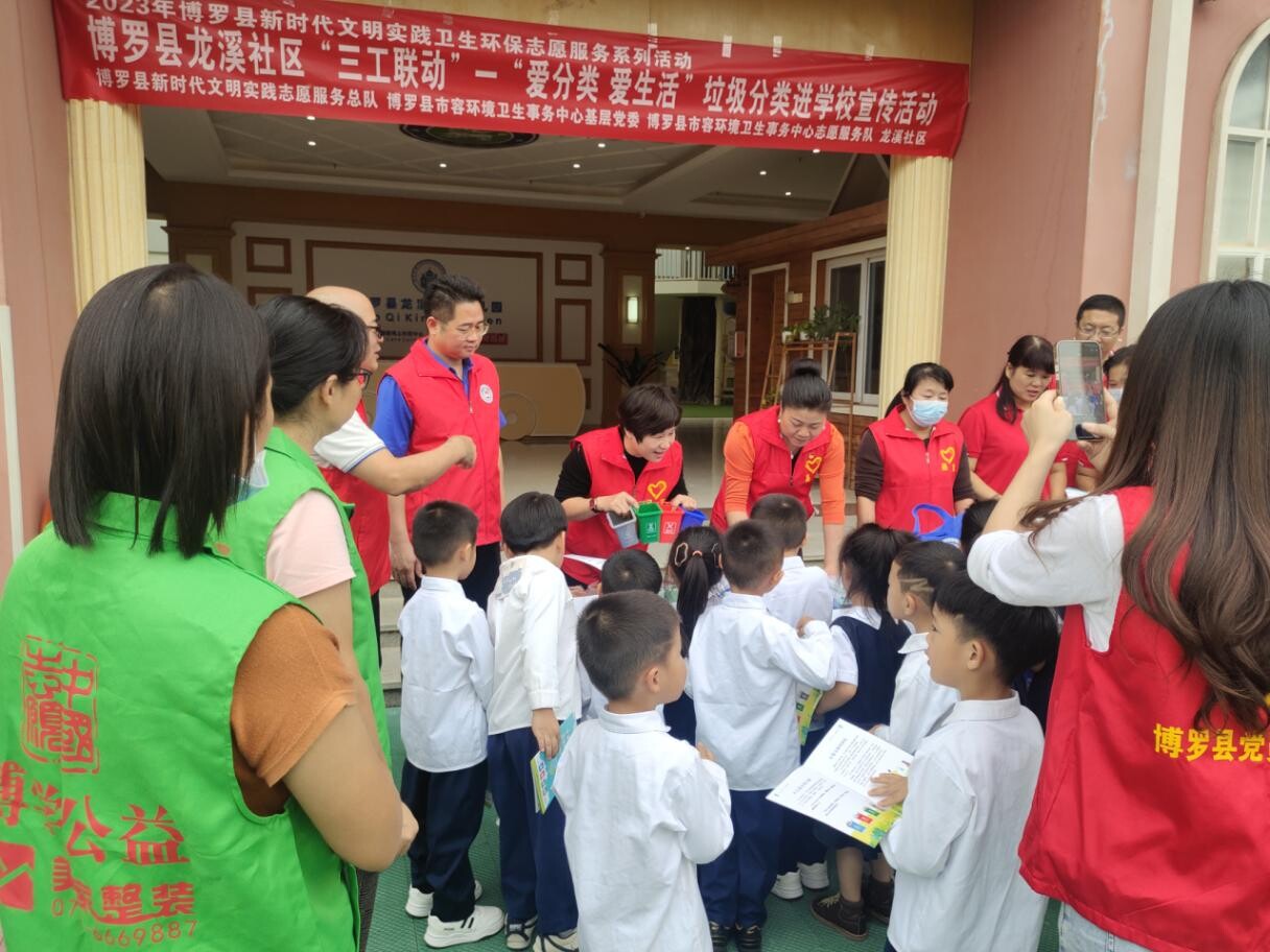 为了普及学生掌握生活垃圾分类基本常识,增强学生垃圾分类基本技能,从而提高学生自觉爱护环境卫生的意识,引导学生积极参与到实践垃圾分类的行动中,养成垃圾分类的好习惯,共建美好校园。2023年10月18日,龙溪社区党支部发挥“党工+社工+义工”三工联动体系作用,携手中文博彩平台城乡管理和综合执法局、中文博彩平台市容环境卫生事务中心等志愿者在龙溪宝麒幼儿园开展“小手牵大手,小孩教大人”垃圾分类进学校宣传活动。