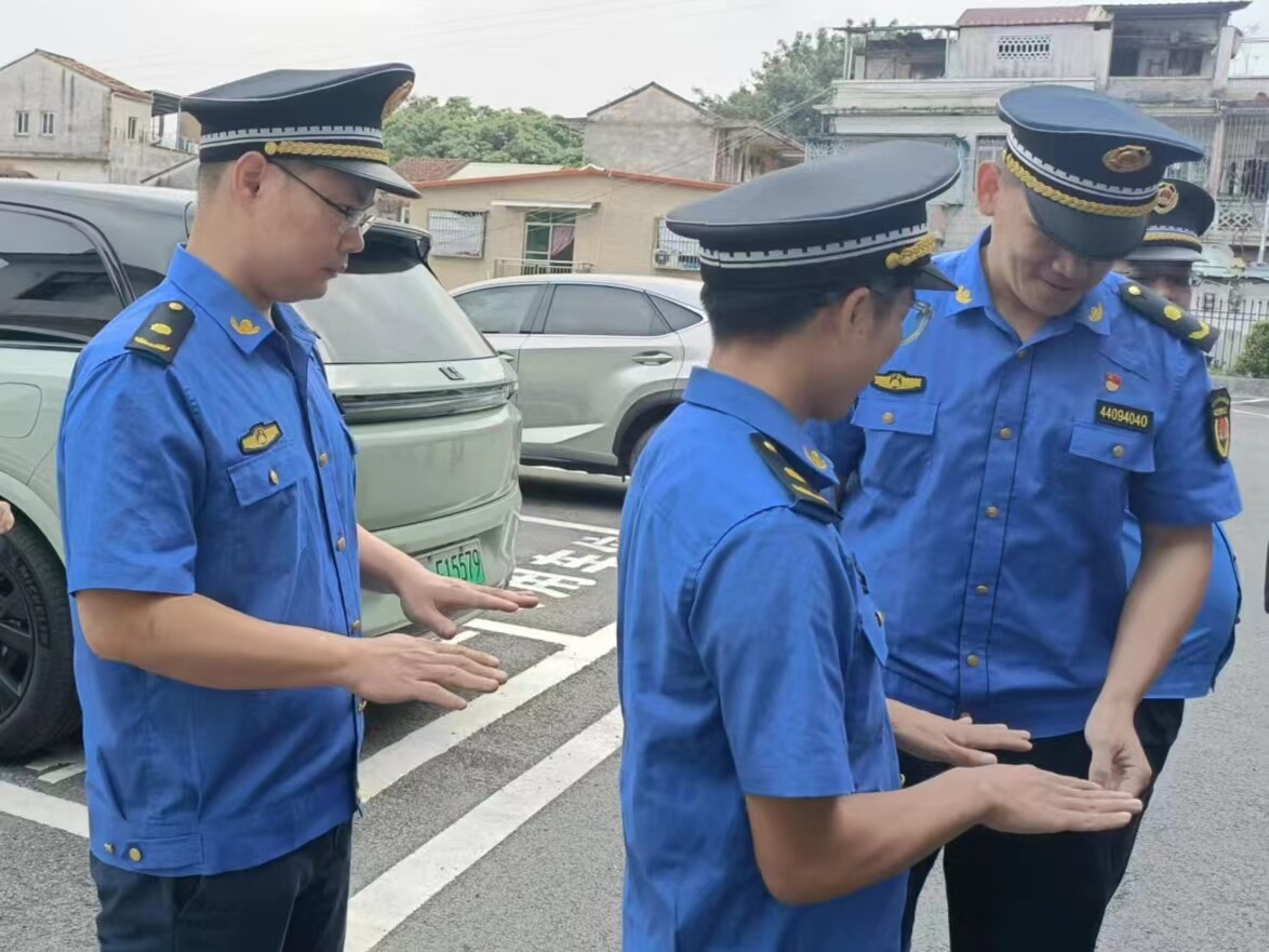 整队完毕后,检查人员依据《惠州市城乡管理综合执法行为规范》等相关规定,全面细致地对着装规范和仪容仪表开展检查,严纠是否按规定着装,是否染发,男性是否留长发、蓄胡须,女性是否束发、佩戴首饰,是否染指甲、留长指甲等问题。
