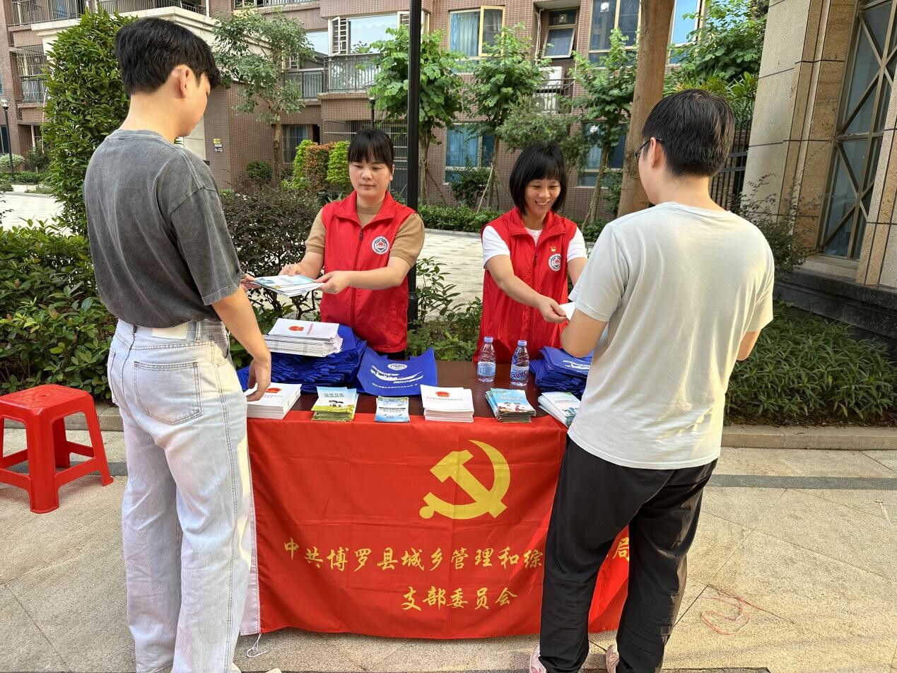会后,城管工作人员前往东江豪门小区开展宣传活动,向社区居民派发宣传折页和法律法规单行本,普及广场舞、市容市貌、垃圾分类等相关法律知识,耐心细致地为群众答疑解惑,引导社区居民知法守法,通过合法渠道维护权益。
