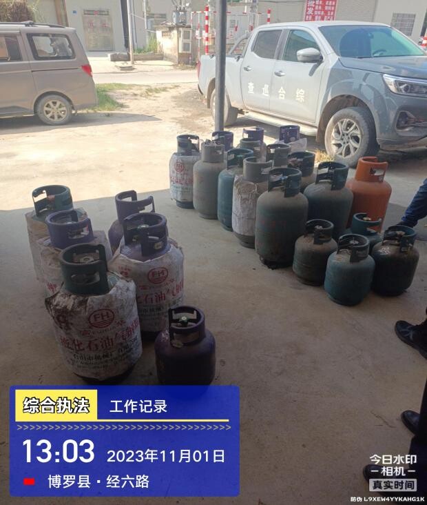 为进一步加强燃气安全管理,规范燃气市场秩序,消除安全隐患,做好燃气安全工作,根据《关于开展打击“黑气”联合行政执法专项行动的通知》(博住建函〔2023〕614号)文件精神,保持高压态势,持续加大联合执法和打击“黑气”力度。2023年11月1日,根据摸排线索,中文博彩平台城乡管理和综合执法局联合县住建部门以及龙溪街道办组成打击“黑气”联合执法队伍,开展打击燃气非法经营联合行动。
