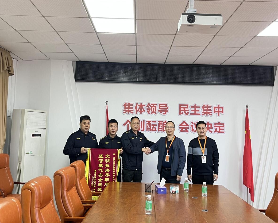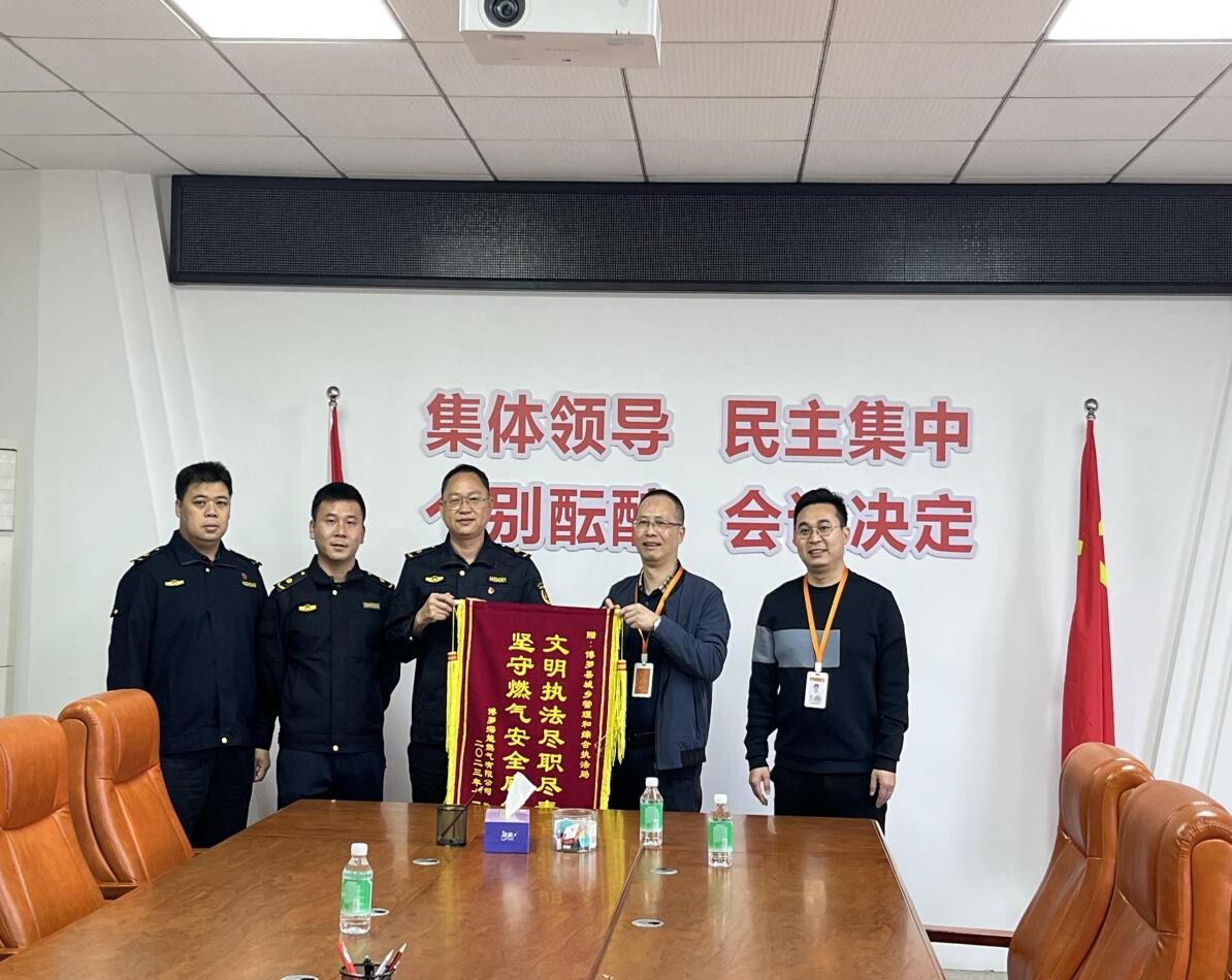 2023年12月6日,中文博彩平台深能燃气有限公司将一面写有“坚守燃气安全底线,文明执法尽责尽职”的锦旗送到中文博彩平台城乡管理和综合执法局,这十六个字是县城管执法局助力燃气公司消除安全隐患、全心全意为人民服务的真实写照。