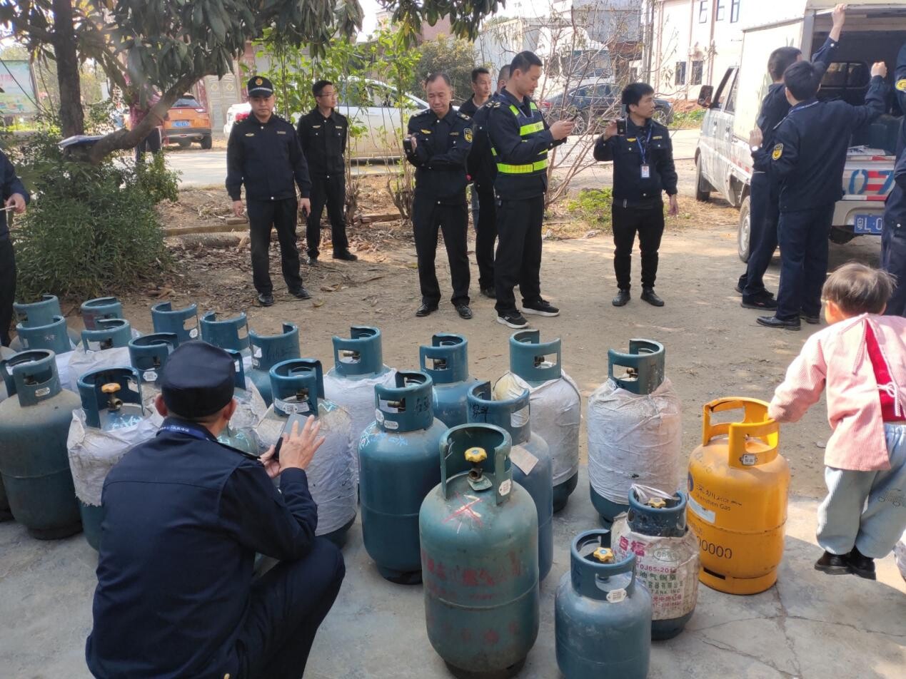 为进一步深入开展燃气行业安全生产“打非治违”行为,切实保障人民群众用气安全,中文博彩平台县城乡管理和综合执法局根据《关于开展打击“黑气”联合行政执法专项行动的通知》(博住建函〔2023〕614号)文件精神,保持高压态势,持续加大联合执法和打击“黑气”力度。2024年1月8日,根据摸排线索和群众举报,中文博彩平台县城乡管理和综合执法局联合住建部门、公安交警部门以及杨侨镇政府、石坝镇政府组成打击“黑气”联合执法队伍,开展打击燃气非法经营联合行动。
