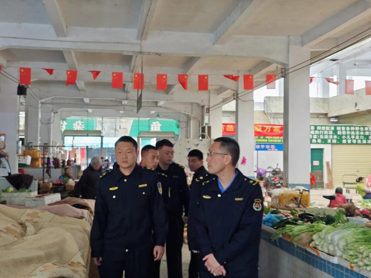 座谈会结束后,我局工作人员和镇街执法队走访到镇街集贸市场,对流动商贩就地沿路摆摊、将商品摆到了人行道上等情况进行了实地查看,与商贩进行交流沟通,详细了解了集贸市场形成原因、流动商贩聚集高峰时间及集贸市场管理等情况,指导镇街执法队根据《城市市容和环境卫生管理条例》《惠州市市容和环境卫生管理条例》做好日常监督管理和柔性执法工作,进一步科学划定临时摆卖区域,确保集贸市场环境干净整洁、井然有序,推动市场经营规范化,进一步助力文明城市创建。
