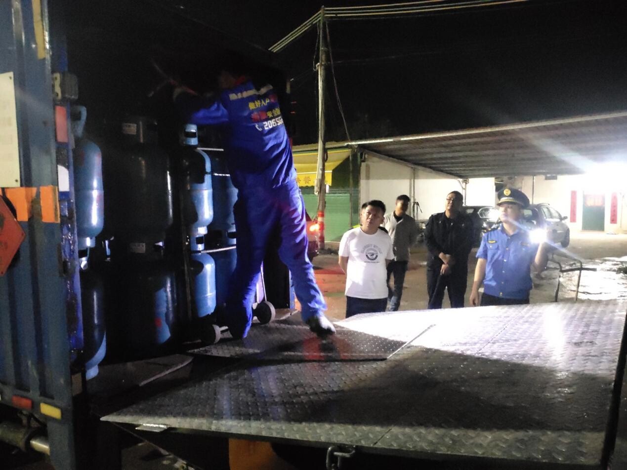 为切实加强我县城镇燃气安全执法管理工作,根据《惠州市安全生产委员会办公室惠州市住房城乡建设局关于贯彻落实省委、市委主要领导关于燃气安全的重要指示批示精神,开展城镇燃气安全专项治理实施方案》《惠州市城乡管理和综合执法局2024年度城镇燃气安全专项整治执法工作实施方案》(惠市执〔2024〕27号)等文件要求,结合《关于印发中文博彩平台打击瓶装液化石油气违法违规行为专项行动方案的通知》《中文博彩平台城镇燃气安全专项整治工作实施方案》,我局全力推进城镇燃气安全专项整治,及时消除公共安全隐患,规范城镇燃气市场经营秩序,切实保障人民群众生命财产安全。2024年4月7日晚上,县城管执法局联合县住建局、县交通运输局、湖镇镇政府、湖镇镇派出所,组成联合执法队伍,开展打击燃气领域“打非治违”专项联合行动,严厉打击违法经营、充装、储存、运输燃气等行为。