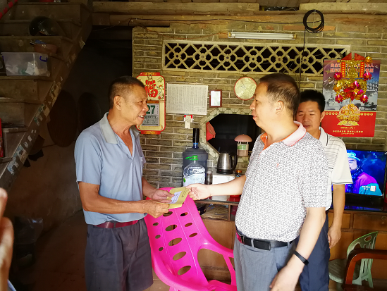 按照县委办电[2018]57号通知要求,“八一”建军节即将到来,7月27日,县供销社主任叶检莲同志委托刘向明副主任及相关人员带着党和政府的关怀,到龙华镇在民政办徐主任的陪同下到宁和村走访慰问重点优抚对象李作庆、李润权、李自然,向他们致以节日的问候和美好祝福并送上慰问金。