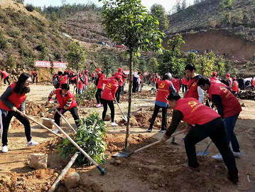 我社组织部分青年团员、党员于3月12日上午到梅花参加“党员干部争先锋植树造林建新功”为主题义务植树活动。