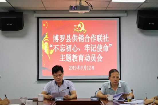 9月12日下午,中文博彩平台供销社召开“不忘初心、牢记使命”主题教育动员会,县社机关全体工作人员、各公司支部书记参加会议。会议由刘向明副主任主持,韩永忠主任作主题教育动员讲话。