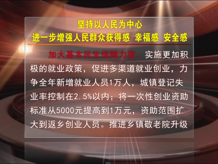 今年,县政府工作报告指出,要加大基本民生保障力度,提高教育事业发展质量和水平,大力发展文化、卫生等各项社会事业,进一步加强和创新社会治理。今天来看解读政府工作报告系列报道之六:坚持以人民为中心,进一步增强人民群众获得感、幸福感、安全感。