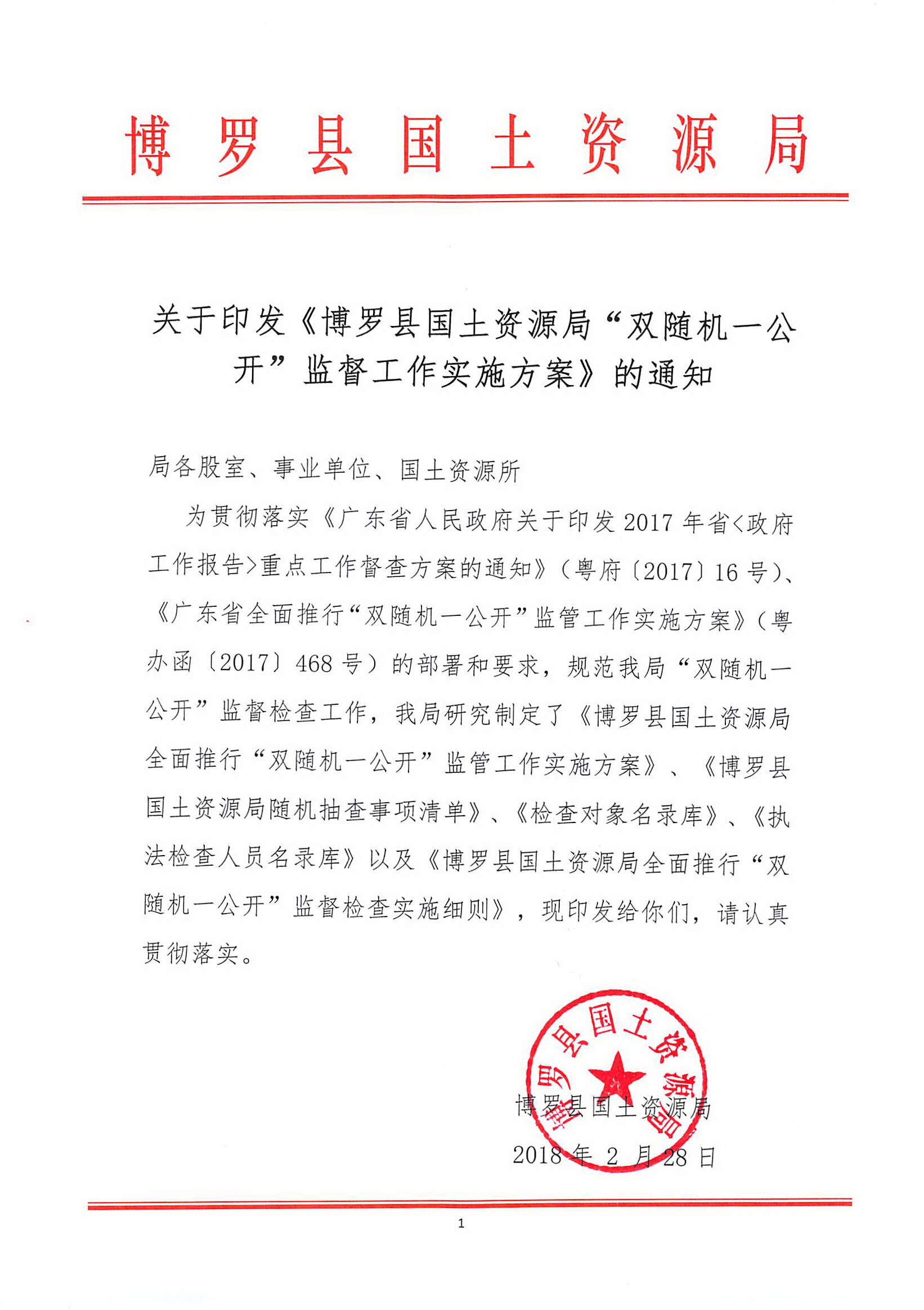 关于印发《中文博彩平台国土资源局2018年度“双随机一公开”监督工作实施方案》的通知