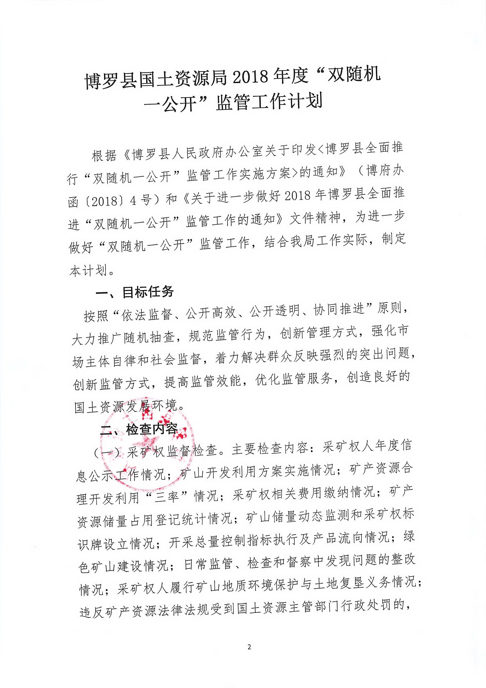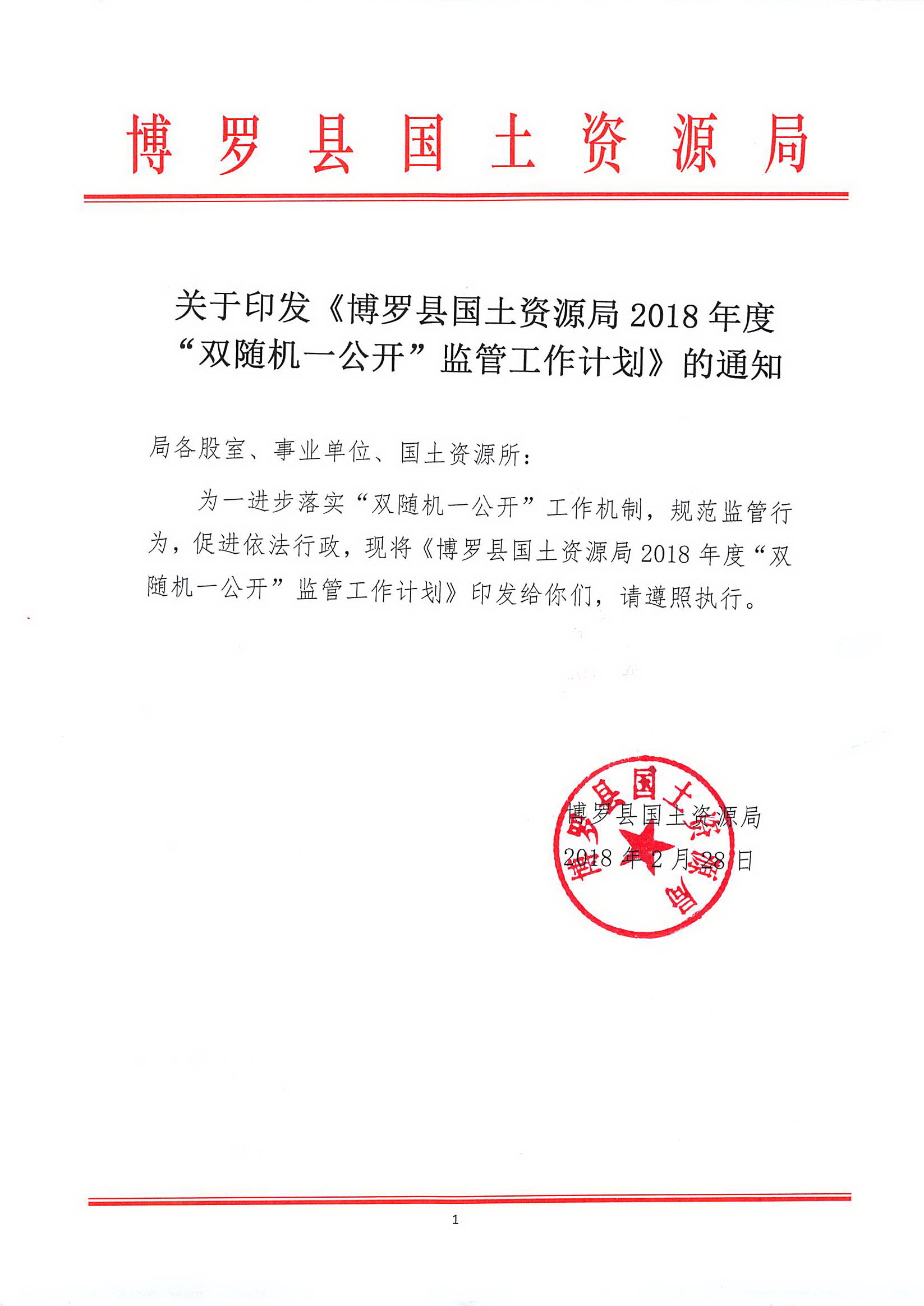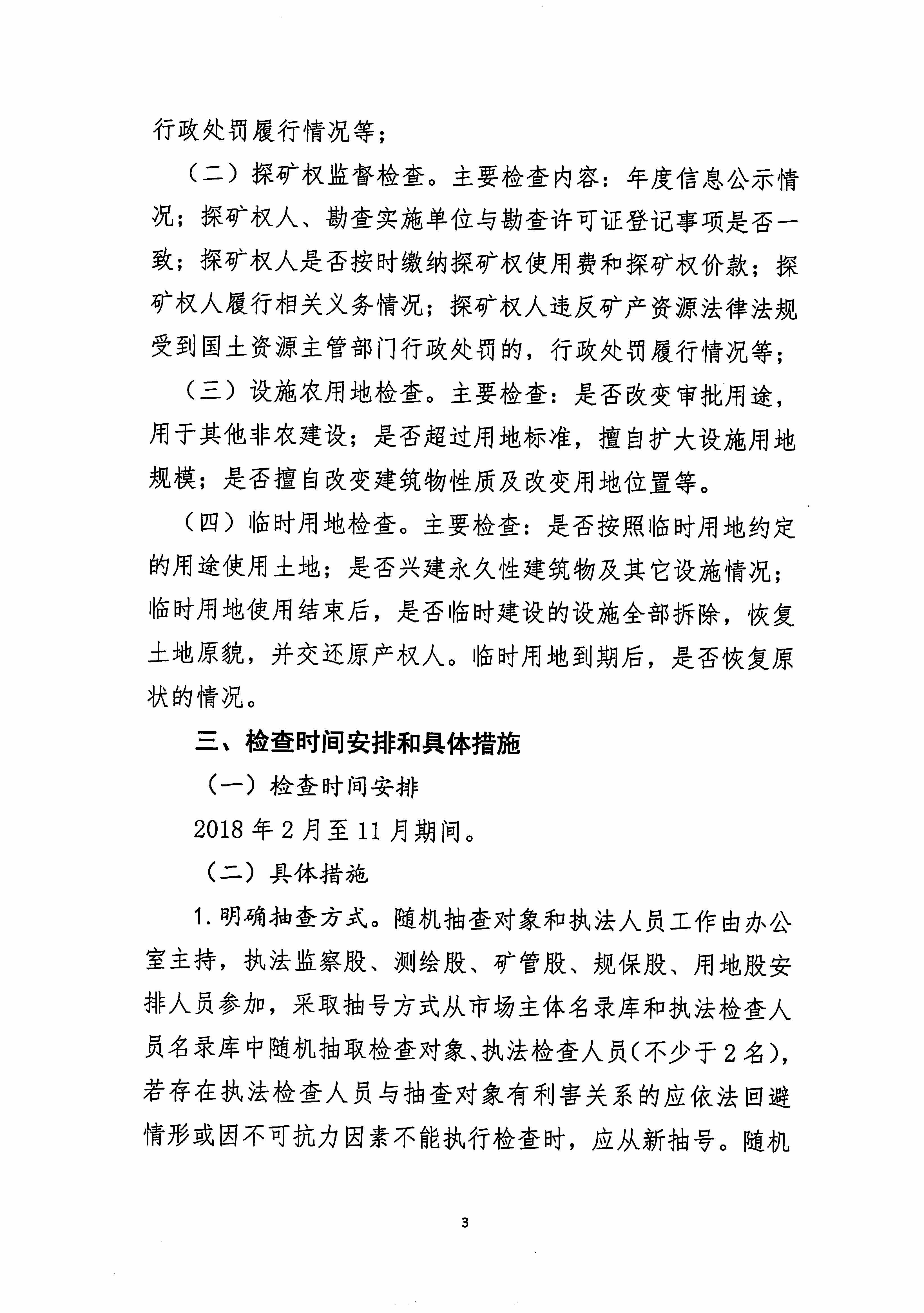 关于印发《中文博彩平台国土资源局2018年度“双随机一公开”监管工作计划》的通知