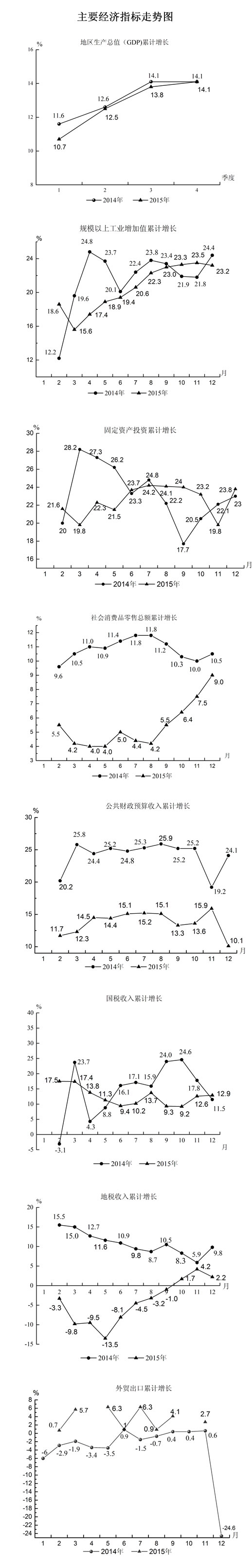 今年以来,在国内形势总体平稳的大形势下,全县主要经济指标总体呈现逐步转好势头。据市统计局核定,一季度、上半年、前三季度及2015年全县地区生产总值分别增长10.7%12.5%13.8%14.1%,增速由年初逐步上升,全年达最高水平。2015年,全县实现地区生产总值547.12亿元,增长14.1%,增幅比去年持平。其中,第一、第二、第三产业增加值分别增长3.9%20.5%5.7%,三大产业结构为8.454.137.5,三次产业对经济增长的贡献率分别为2%83.6%14.4%,分别拉动GDP增长0.3个、11.8个和2个百分点。