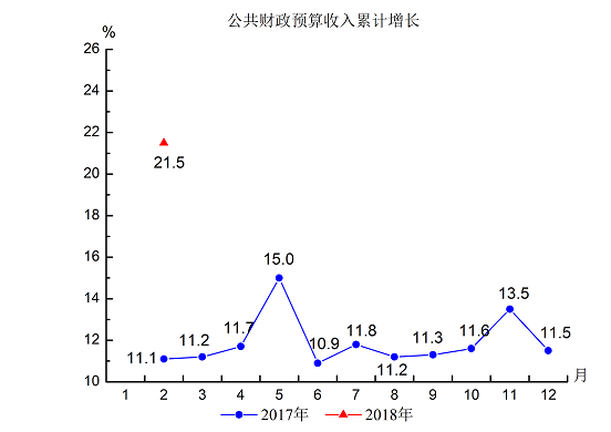 (六)财政收入增速稳步提升。得益于税收收入的较快增长,全县一般公共预算收入增速亦稳步提高,1-2月完成6.93亿元,增长21.5%,增幅比上年同期提高10.4个百分点。其中税收收入4.84亿元,增长36.3%,增幅比预算收入高出14.8个百分点,比上年同期提高14.4个百分点。全县一般公共预算支出16.6亿元,增长4.3%,增幅比上年同期回落38.6个百分点。其中,一般公共服务等八项支出合计13.1亿元,增长11.2%