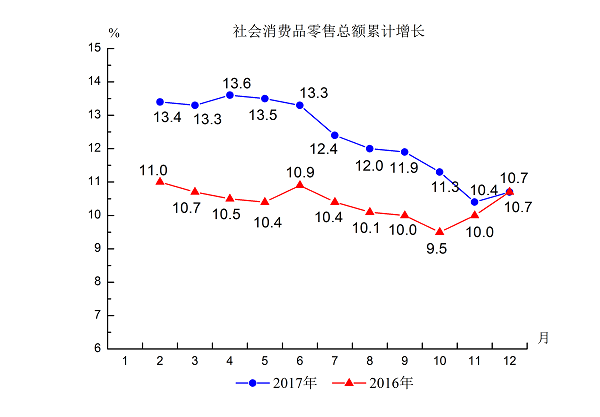 4.社会消费品零售总额186.84亿元,增长10.7%,增幅与2016年持平。