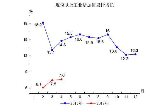 1.规模以上工业增加值增长7.6%,增幅比去年同期回落7.2个百分点。