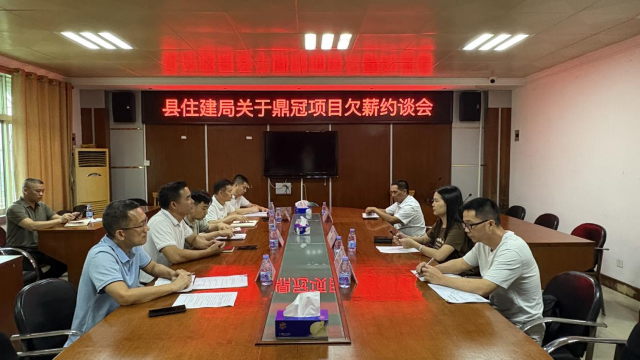 2025年5月19日,中文博彩平台住建局副局长张炳华在局西北路办公区六楼会议室召开鼎冠项目欠薪问题约谈会,县人社局副局长李智敬、县城管执法局四级主办陈俊晖、局建管股相关人员及该项目建设单位、施工单位和监理单位相关人员参加会议。
