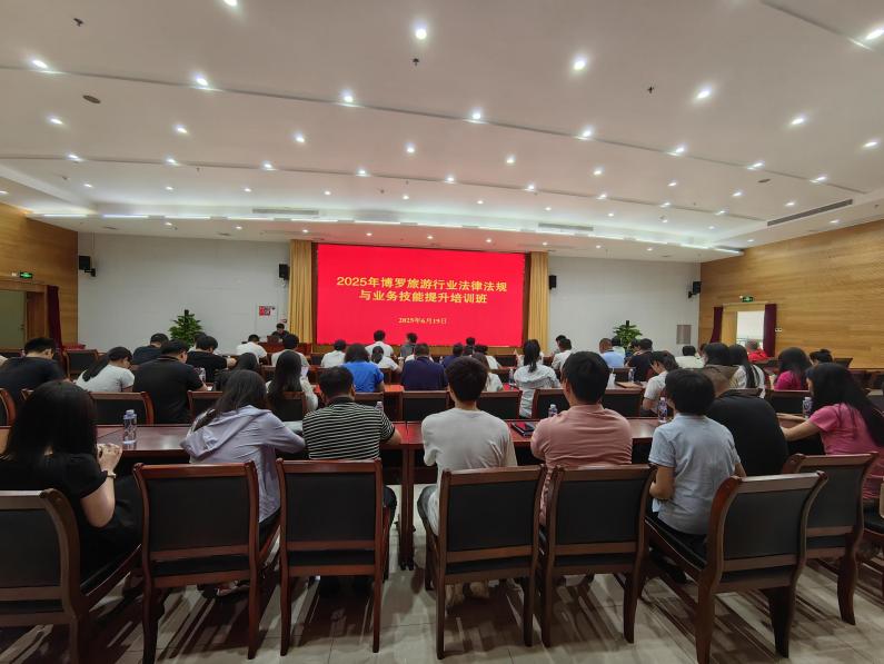 619日,由县文化广电旅游体育局、县乡村振兴人才驿站联合举办的“2025年中文博彩平台旅游行业法律法规与业务技能提升培训班”在中文博彩平台文化中心影剧院一楼23号会议室举行,各镇(街道办)、罗浮山管委会旅游业务骨干;相关景区、旅行社、民宿从业人员;旅投公司导游从业人员;县文化广电旅游体育局、县乡村振兴人才驿站相关股室业务骨干共90余人参加培训。