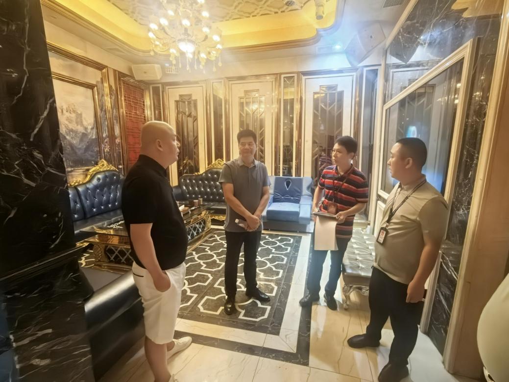 7月4日,局党组成员、副局长谢文山带领市场管理股工作人员前往园洲镇开展行政审批场地审核工作,共检查5家场所。