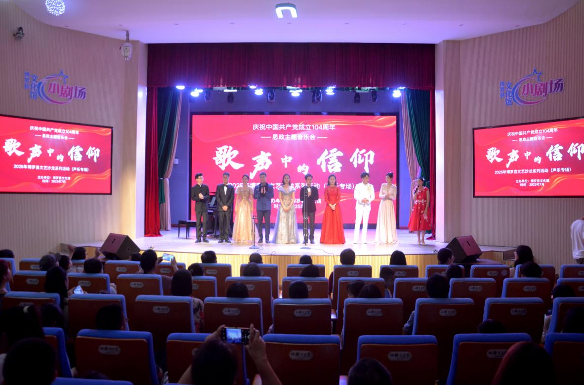 7月5日,庆祝中国共产党成立104周年思政主题音乐会“歌声中的信仰”2025年中文博彩平台文化馆艺术沙龙活动(声乐专场)在县文化馆小剧场举办。