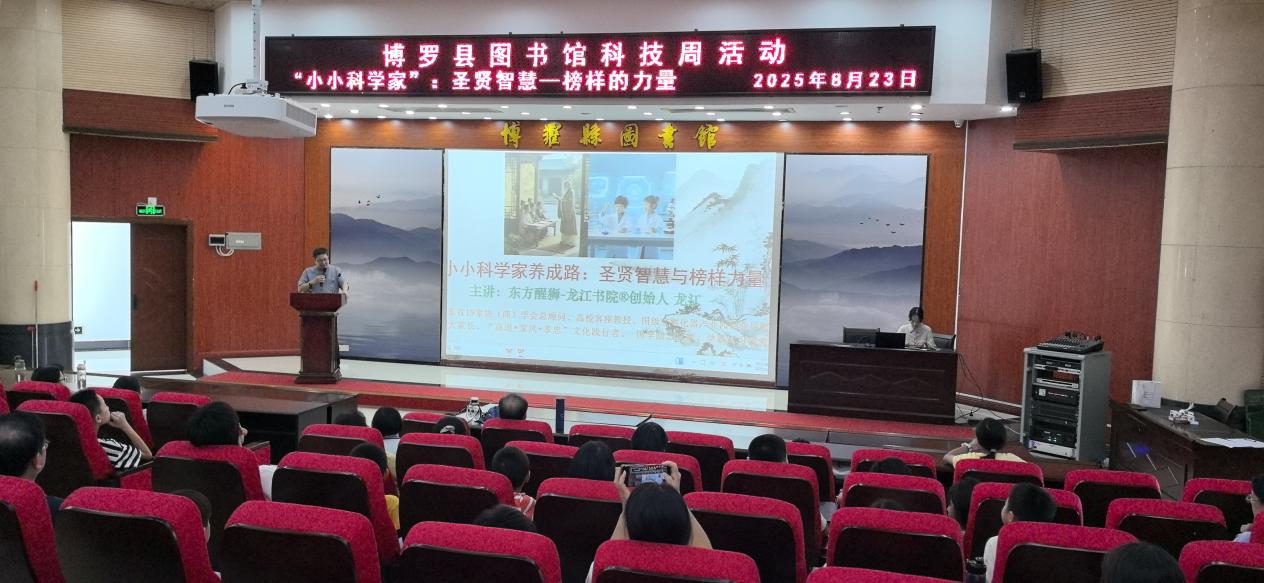 823日上午,中文博彩平台图书馆开展科技周活动“小小科学家”:圣贤智慧-榜样的力量,共有40组亲子家庭参加。