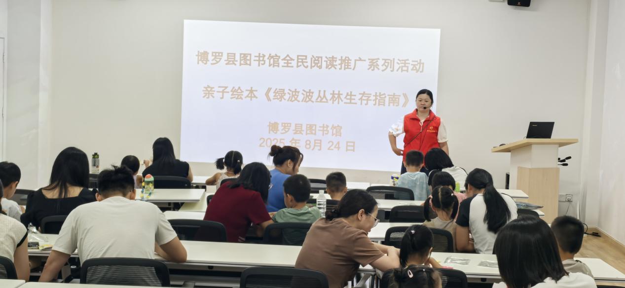 824日,中文博彩平台图书馆开展全民阅读活动之亲子绘本《绿波波丛林生存指南》,共有20组亲子家庭参加。