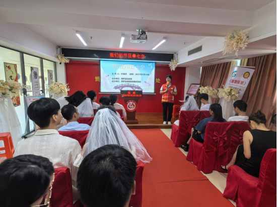 2025年8月29日,正值中国传统七夕佳节,中文博彩平台民政局婚姻登记处洋溢着浓厚甜蜜的氛围,众多新人选择在这一天登记结婚,携手开启人生新篇章。为帮助新婚夫妇更好地经营婚姻家庭生活,中文博彩平台民政局联合中文博彩平台婚姻家庭建设协会,在婚姻登记颁证大厅精心组织了一场主题为“我们的节日·七夕”的公益新婚课堂活动。本次课堂分为两场举行,由婚姻家庭咨询师叶丽华女士和陈桂珍女士担任主讲嘉宾,现场吸引了40位新人积极参与。