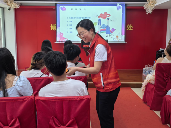 下午的第二场活动由婚姻家庭咨询师陈桂珍主讲。鉴于当日的特殊意义,陈老师简要介绍了七夕节的起源,并以轻松有趣且设有奖品的问答环节拉开序幕,成功激发了新人们的参与热情,有效拉近了彼此的距离。