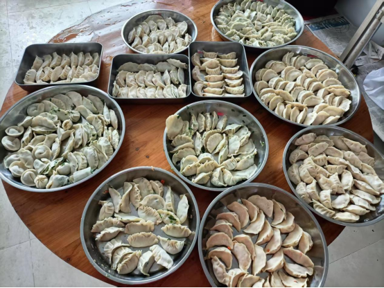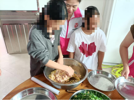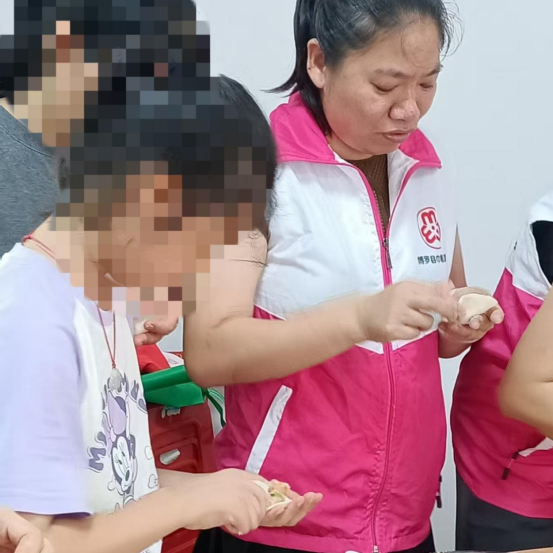 在新围村村委的“爱心厨房”里,美丽的“爱心妈妈”先提前准备好饺子皮、馅料等食材,红色桌布铺就的操作台前,“爱心妈妈”与孩子们围坐在一起包饺子,在协作中感受家的温暖。“先把皮摊平,中间放馅,两边轻轻捏紧”“爱心妈妈”一边示范,一边耐心指导。孩子们有的专注地跟着步骤学包,有的尝试创意捏出不同形状。“这是我第一次包饺子,虽然包得不太好看,但和‘妈妈’们一起做饭特别开心!”困境儿童小美举着自己的“作品”兴奋地说。活动结束后,热气腾腾的饺子端上餐桌,孩子们品尝着自己的劳动成果,脸上洋溢着幸福的笑容。